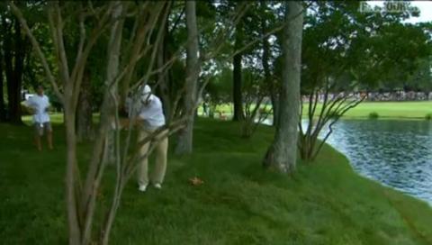 Meanwhile, look at Garrigus at 18th of TPC Southwind. There is no way that a guy who hits the ball 350+ should ever have made a 7 on that hole. He could hit a driver into the trees, pitch out, hit up to the green, and 3-putt it without making a 7. There is no way that 18 at TPC Southwind compares to this…