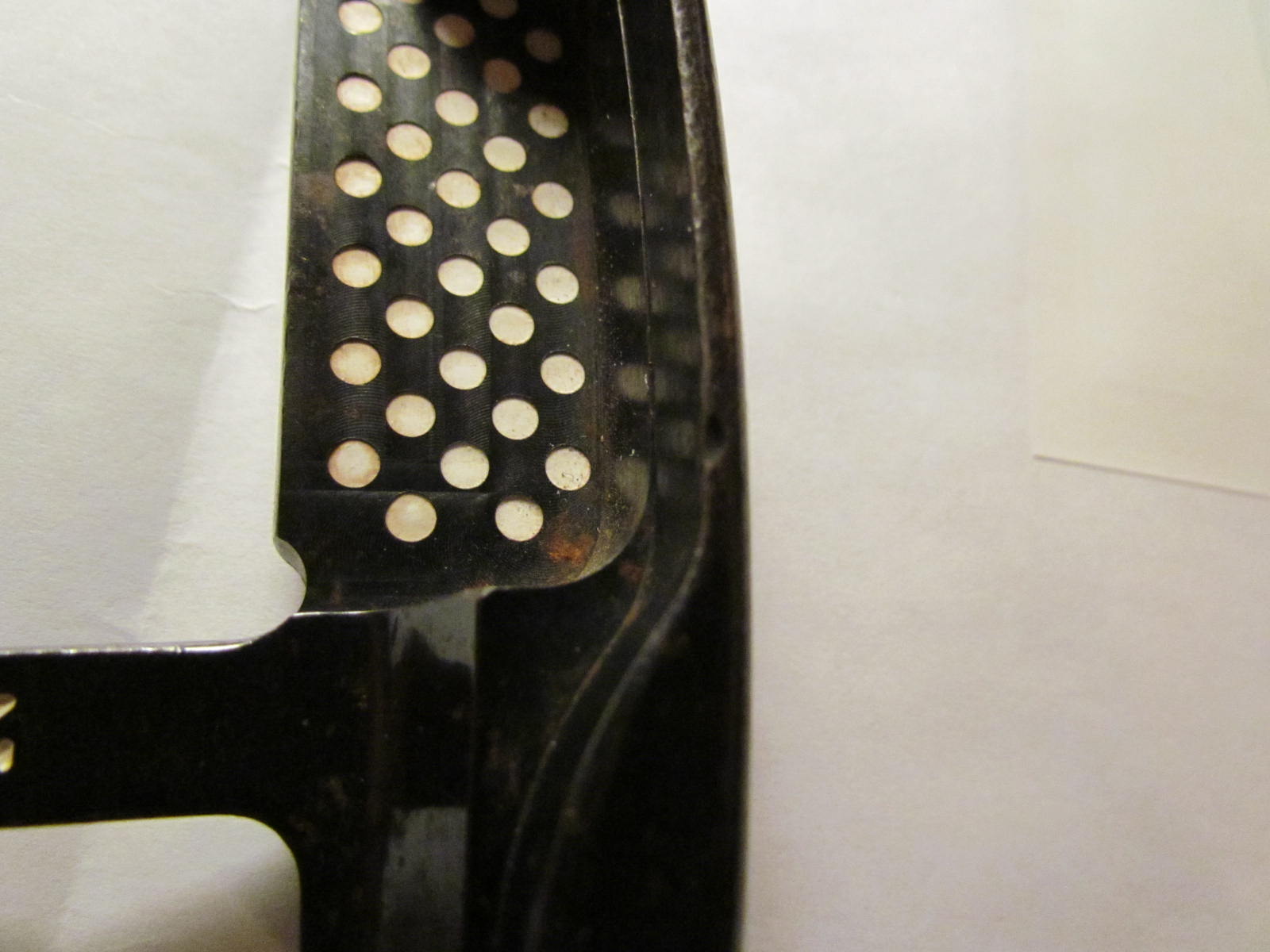 As you can see, there are rust spots and a few dings, including one on the rear flange and a pretty significant one on the face.