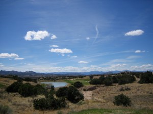 Again, we break with our stated goal of reviewing courses that the average joe can play without paying an arm and a leg by visiting one of the more exclusive clubs in New Mexico (hey, what can I say, if you can get on you’re going to play). While these courses are private, they have a distinctly resort feel to them. The drive up to the club house wanders through the prairie and has me wondering why I don’t live out in the desert. We pass tennis courts, adobe houses, and some of the back nine on two beautiful Jack Nicklaus designs. The pro shop is WELL apportioned and has a full array of titleist equipment (complete with fitting guy!). There are at least 10 different brands of clothing, any of which might be at home on the set of caddyshack. The practice facility was equally well apportioned. Grass driving range complete with pyramids of Nike practice balls and a LARGE putting green/chipping area with every contour imaginable. As for the facility: