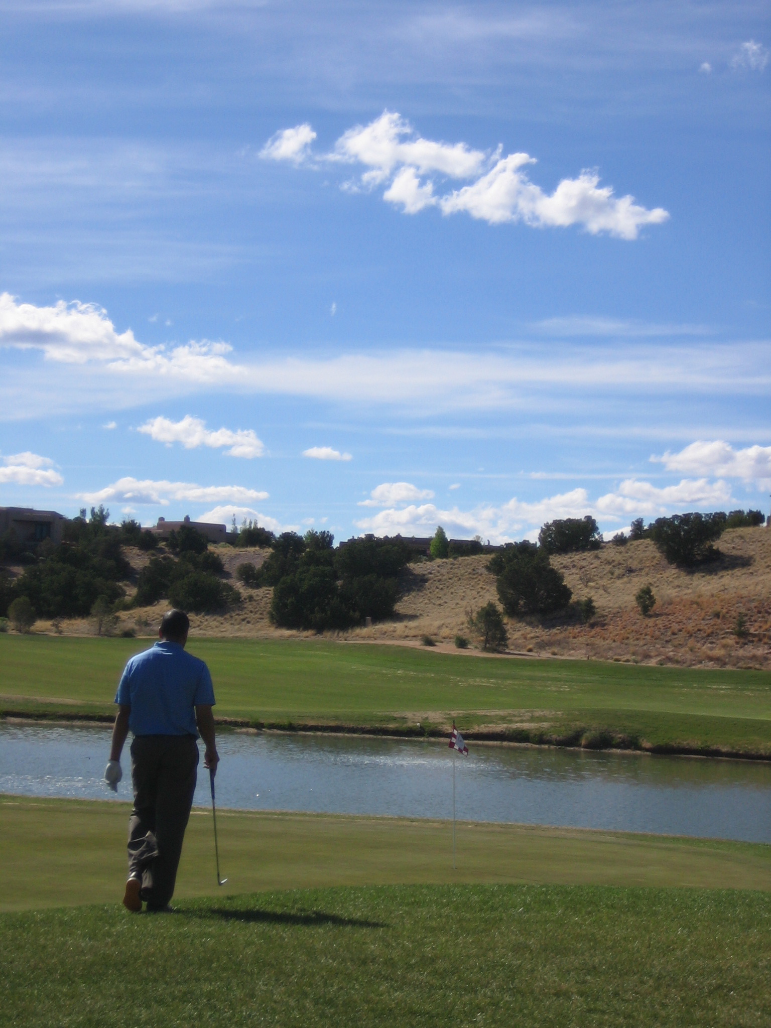 I recently had a chance to visit the beautiful state of New Mexico. Though I went for a much more important reason, that reason understands my obsession with this crazy game, and for some reason, encourages it. Before I get to the specifics of the course, I must say that I could very easily write a “Play of the Week” for the whole state. If you haven’t been, you must go. Green chile, staggering views, a wonderful farmers market in Santa fe, a rustic downtown, and phenomenal weather are a few of the things that await. For golf, this state is a hidden gem. I’ll admit, prior to going, I wasn’t hopeful. When was the last time there was a lush green course out in the desert? (I can hear JK screaming Wolf Creek).