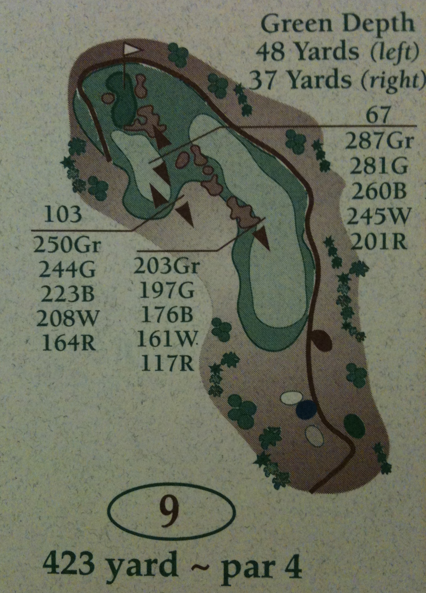 Make sure you grab a yardage book for this course from the pro shop. Not only is it immensely useful on the par 5’s and the dog-leg par 4’s, it’s a nice keepsake to remember your round. You can also you use it to write well-informed blog entries (or comments to ours!).